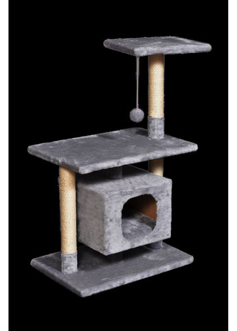 Кошкам нравиться уютный городок с большими площадками для отдыха и домиком. Когтеточка устойчивая, так как имеет широкое основание. Питомец будет доволен. Нижнее основание - 40 см * 60 см, средняя платформа - 40 см * 60 см, домик - 34 см * 34 см * 25 см., верхняя платформа - 34 см * 34 см, столбики - 2 шт. по 50 см и 1 шт - 40 см. Общая высота когтеточки - 96 см. Материалы - мех, джут.