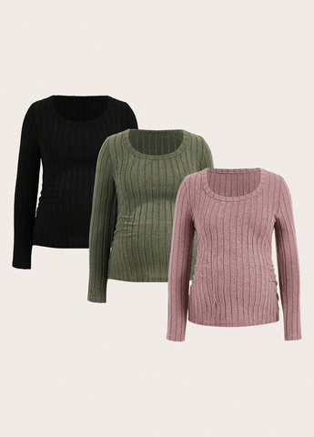Топ для кормления с длинными рукавами из мягкого трикотажа, круглым вырезом, двойным слоем сверху и практичным внутренним верхом для облегчения доступа для кормления.