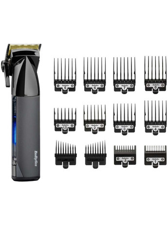 Откройте для себя новую коллекцию BaByliss Super-X Metal Series, разработанную, чтобы предложить вам лучшую прическу и уход за волосами, не выходя из дома! Коллекция Super-X Metal объединяет элегантные элементы и высококачественные технологические элементы. Высокопроизводительная машинка для стрижки волос обеспечивает исключительную производительность и профессиональные результаты. Конические направляющие помогают создавать точные настройки резки, идеально подходящие для смешивания и создания идеальных переходов. Треугольная форма корпуса позволяет волосам свободно течь и, таким образом, предотвращает засор. Исключительная емкость литий-ионного аккумулятора обеспечивает более 3 часов автономной работы даже при более низком уровне заряда. Цифровой дисплей показывает, идет ли зарядка, и время работы от оставшейся батареи. Вы также можете произвести быструю зарядку в течение 20 минут примерно на 20 минут использования. Контроль точности резки невероятный, до +0,6 мм и легко меняется с помощью бокового рычага. С таким уровнем точности вы сможете стричь волосы с плавным переходом от коротких волос к длинным. Машинка для стрижки BaByliss E996E имеет 10 стандартных режущих направляющих высотой от 1,5 до 25 мм, и на каждой режущей направляющей имеется этикетка; Элегантный и эффективный Новая машинка для стрижки волос BaByliss Super-X Metal Series E996E имеет идеальные размеры, а также сбалансированный вес, идеально подходящий для комфортного использования. Это потрясающее обновление для всех мужчин, которые хотят ухаживать и бриться дома. Ручка имеет крепкий, элегантный, но одновременно функциональный металлический корпус, обеспечивающий непревзойденное удобство в использовании. Литий-ионный 3 часа автономной работы Благодаря 3 часам автономной работы без проводов вы сможете сделать идеальную прическу без перерыва. Перед первым использованием машинки для стрижки BaByliss E996E серии X-Metal заряжайте аккумулятор в течение 3 часов. Максимальная емкость батареи будет достигнута только после трех циклов зарядки и разрядки. Если вы забыли зарядить его перед использованием, вы получите около 20 минут использования с быстрой зарядкой за 20 минут. Вы сами контролируете высоту среза Регулируя точность резки по бокам, вы можете очень удобно помочь с точностью резки даже во время резки. Чтобы увеличить высоту стрижки, опустите рычажок. У вас есть 5 позиций регулировки, от +0,0 мм до +0,6 мм. Лезвия из японской стали Лезвия из японской стали обеспечивают очень точную резку и каждый раз отличный результат. Для оптимальной резки мы рекомендуем смазывать устройство маслом между направляющими после каждого использования. 10 направляющих для резки Машинка для стрижки волос имеет 10 стандартных режущих направляющих высотой от 1,5 до 25 мм, и каждая режущая направляющая промаркирована для большего удобства использования. Машинка для стрижки волос также содержит 2 точных направляющих для ушей (левое и правое ухо) и обеспечивает идеальную стрижку волос от ушей до затылка. Современные стрижки Для более коротких волос сзади и по бокам, но более длинных сверху, прикрепите одну из 10 направляющих для стрижки высотой от 1,5 мм до 25 мм. Вы можете начать с затылка и держать направляющую для стрижки близко к голове скользящими движениями вверх и наружу.
