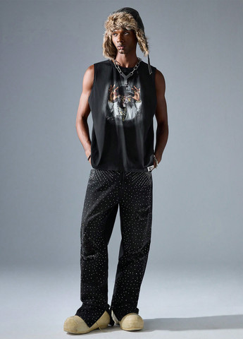 Эта мужская безрукавка имеет повседневный летний дизайн. Основная часть выполнена из трикотажной ткани с небольшой эластичностью, доступна в черном цвете. Стиль без рукавов делает его безупречным для теплой погоды. Буквы со стразами добавляют нотку элегантности с помощью слогана или узора буквы. Круглый вырез обеспечивает комфорт и универсальность.