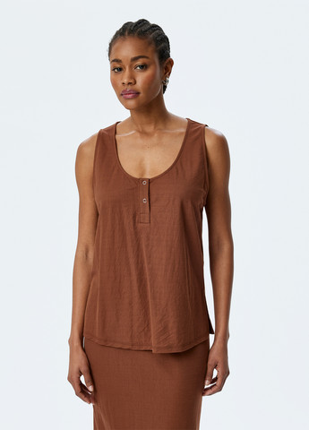 Майка изготовлена из дабл-сатина. Ткань имеет минимальную растяжимость. Благодаря приталенному фасону и небольшим разрезам по бокам хорошо садится по фигуре. Майка с выточками на груди и вшитыми бретелями. Также она имеет V-образный воротник который образует глубокий вырез декольте.