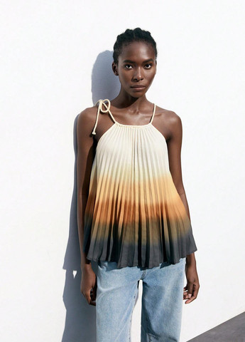 Этот топ SHEIN Maija обеспечивает свободную посадку. Он имеет плиссированный дизайн и тонкие бретельки. Ткань не тянется. Идеально подходит для летних путешествий или повседневной носки.