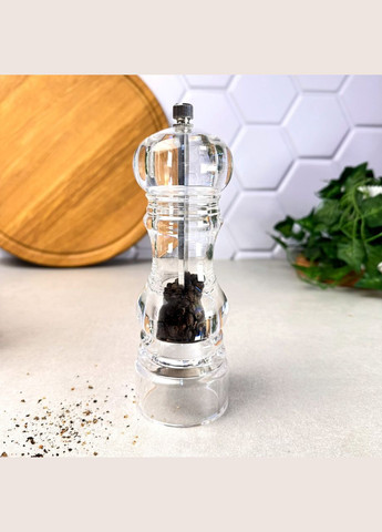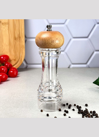 Элегантная мельница для перца — стильное дополнение к вашей кухне или столу. Выполнена из прозрачного акрила с деревянной крышкой, она сочетает в себе практичность и натуральный дизайн. Высота изделия — 17,5 см, диаметр основания — 5,7 см. Благодаря прозрачному корпусу вы всегда видите, сколько приправ осталось внутри. Механизм помола расположен снизу, работает плавно и надёжно. Подходит для перца, соли или других специй средней фракции. Идеальный выбор как для домашнего использования, так и для кафе и ресторанов. Характеристики: Материал: акрил, дерево Высота: 17,5 см Диаметр основания: 5,7 см Страна производитель: Китай Назначение: для перца, соли, специй Упаковка: пластиковая упаковка Особенности: прозрачный корпус, механический помол, стильный дизайн Нужны другие объёмы/размеры? - спросите у менеджера