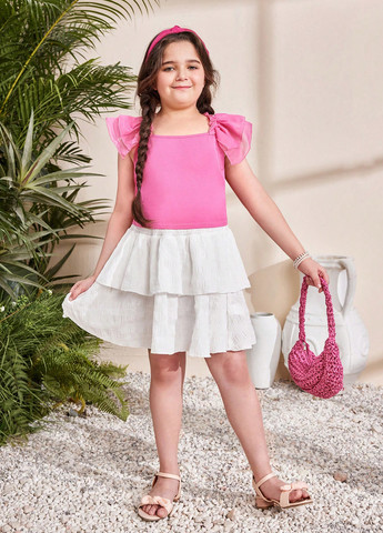 Юбка SHEIN Tween Girl с эффектом мини-торта. Юбка многоярусная. Изготовлена из тканого материала. Юбка имеет естественный крой. Короткая длина. Без подкладки и карманов.