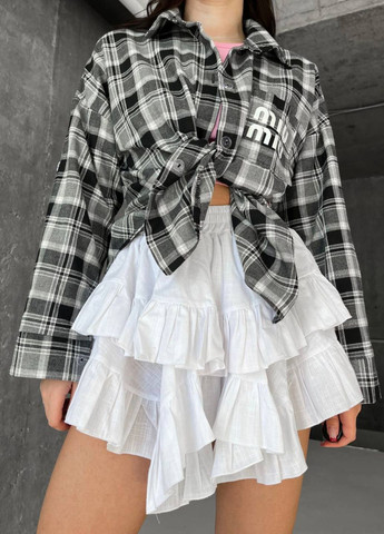 Эта многослойная юбка с рюшами изготовлена из натурального льна, что делает ее идеальной для теплых дней. Мини длина придает легкости и утонченности образу, а рюши придают неповторимый шарм и женственность. Юбка подходит как для повседневных образов, так и для более праздничных моментов, даря вам комфорт и стиль.
