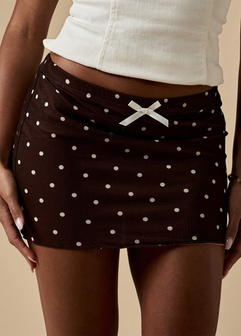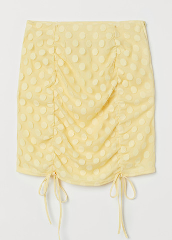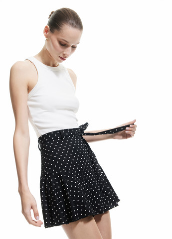 Плиссированная юбка из тканого материала с высокой талией с вафельной резинкой и декоративной кулиской. Юбка до колена с металлическим принтом в горошек. Застежка-молния и пуговица сзади. Кромка снизу обшита оверлком. На подкладке из джерси. Возможно повреждение бирки