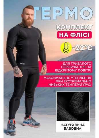 Супер теплый термокомплект, предназначенный для носки на каждый день в условиях города. Так же в комплекте будет комфортно и тепло на охоте, зимней рыбалке и на работе в уличных низких температурах. Термобелье нужно носить на голое тело. Дальше, наверх можно одевать вашу обычную повседневную одежду и смело отправляться на улицу. При этом важно помнить что, для того, чтобы термобелье выполняло свои функции — отвода влаги от поверхности тела и сохранения тепла, оно должно ваше тело облегать, но не сдавливать. Преимущество нашего термобелья :·Ткань мягкая и эластичная, что удобно при носке под джинсами, брюками и свитерами. Такой материал Вы не будете ощущать на себе и он не будет выделяться через одежду. ·Структура и плетение ткани способствует процессу кислородного обмена. · В составе ткани присутствует натуральная нить (хлопок) ·Рекомендуется стирать термобелье руками, или же в машинке на деликатном режиме. После стирке изделие не потеряет свой вид и форму. Футболка с длинным рукавом на манжете, круглый вырез. Штаны длинные на манжете, высокая посадка, мягкая резинка. Все швы на изделие "плоские" они не приносят дискомфорт и не натирают.