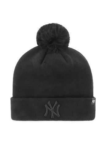 Мужская темно-синяя шапка из акрила от 47 Brand (47 Бренд). Модель с широким подворотом, сбоку лейба с логотипом бренда. Декорирована спереди белой нашивкой New York