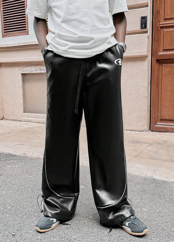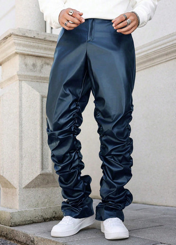 Мужские брюки Manfinity Streetrush из искусственной кожи. Эти брюки имеют стандартный крой. Они включают карманы, сборку и застежку-молнию. Ткань не тянется. Линия талии — естественная средняя.