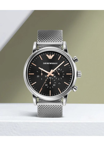 Часы мужские Emporio Armani AR11429. Оригинал. Привезены из Италии. Диаметр корпуса 46мм, ширина ремешка 21мм. Серебряный браслет из нержавеющей стали. Часовые метки и стрелки золотые. Стекло минеральное, стойкое к царапинам. Водонепроницаемость до 50м.