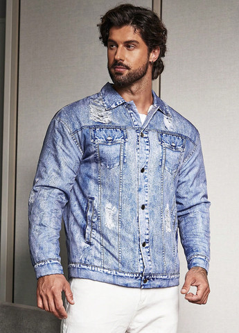 Мужская джинсовая куртка Manfinity EMRG. Куртка имеет воротник и стандартные рукава. Подол стандартной длины и застёжку на пуговицы. Куртка имеет карманы и рваные детали. Стиль вестерн. Материал – деним. Куртку можно стирать в стиральной машине. Классический крой и длинные рукава. Подходит для холодной погоды.