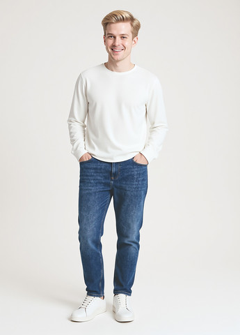Джинсы с пятью карманами, застегиваются на молнию и пуговицу. Длина изделия по внутреннему шву на размер 38: 79 см, окружность талии: 76 см, окружность бедер: 90 см. Размер 38 соответствует международному размеру W32.