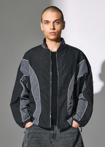 Мужская повседневная куртка DAZY отличается дизайном в стиле колор-блок. Это куртка с длинными рукавами. Посадка свободная. Куртка застегивается на молнию и имеет обычный подол. В комплект входит воротник-стойка.
