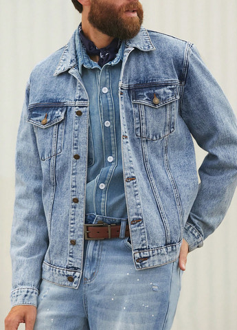 Мужская джинсовая куртка LIVERGY. Сертификат в соответствии со стандартом Recycled Claim – изготовлен из 20% переработанного материала. С воротником Kent и застежкой на пуговицы по всей длине. Пришитые карманы с застежкой на пуговицы. С боковыми карманами. Манжета с пуговицей на конце рукава. С регулируемыми кнопками на талии. Оптимальная посадка и стабильность формы благодаря содержанию высококачественных волокон эластановых LYCRA®. Замеры: предоставляем по запросу Состав: 99% хлопок, 1% эластан (LYCRA®) Артикул: 441156 Возможно повреждение бирки.