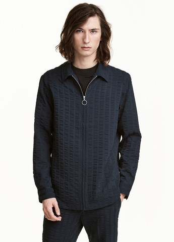 Куртка из ткани в структурную полоску. Отложной воротник и молния спереди. Манжет с кнопкой снизу. Нижний край скруглен.