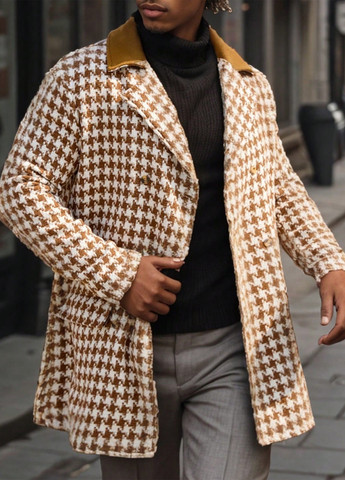 Пальто Manfinity Homme украшона рисунком «гусиная лапка». Оно предназначена для осени. Свободный крой и длинные рукава, имеет карманы. Можно стирать в стиральной машине или чистить в химчистке.