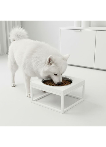 Hollky Base S — миски на подставке для маленьких собак и кошек (2 × 0,45 л) Компактная, изящная и практичная кормушка для мелких собак и кошек: эргономичная форма, устойчивая металлическая рама и легко моющиеся миски.Особенности Две миски по 0,45 л, диаметр 14 см. Стационарная высота — 7 см. Эстетичный дизайн, подходящий под любой интерьер.Размеры Габариты (Д×Ш×В): 36 × 18 × 7 см — высота: 7 см — диаметр миски: 14 смПороды Йоркширский терьер, Чихуахуа, Мальтипу, Той-пудель, Померанский шпиц; кошки: британская короткошерстная, шотландская вислоухая, персидская.Основные преимущества Эргономичность для мелких пород, простота ухода, стильный внешний вид.Характеристики Характеристики: Тип: Подставка с мисками для мелких животных Количество мисок: 2 Материал мисок: Нержавеющая сталь Материал столешницы: Натуральное дерево Цвет рамы: золотая Цвет столешницы: белая