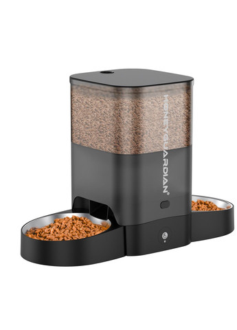 Современная смарт кормушка для домашних животных позаботится, чтобы ваш питомец был сыт даже когда вас нет дома или вы завалены делами. Достаточно просто выбрать количество корма и время кормежки, все остальное сделает автоматика. Управление через приложение. Автоматическая кормушка может подключаться к сети Wi-Fi 2,4 ГГц (только 2,4 ГГц). Программируйте и контролируйте питание домашних животных в любое время и в любом месте с помощью фирменного приложения HGsmart на смартфонах iOS или Android. Регулируемый размер и время приема пищи. Автоматическая кормушка может планировать до 6 приемов пищи в день и выдавать от 1 до 24 порций (макс. 12 порц. на 1 миску), приблизительно по 6 граммов на одну порцию (зависит от размера и веса самого корма). Корм высыпается одновременно в каждую миску. Емкость для хранения сухих кормов - 5 литров. Размер корма должен быть 0,2-1,5 см, иначе он может застрять. После того, как вы запрограммировали графики кормления, они будут постоянно соблюдаться, даже когда устройство выключено.(при наличии батареек) Двойной источник питания. Автоматическая кормушка HoneyGuaridan поддерживает 3 батареи типа D и адаптер постоянного тока. В случае отключения электроэнергии кормушка продолжит работать от батарей, чтобы обеспечить кормление вашего питомца (батарейки в комплект не входят). При питании через батарейки модуль WiFi не активен. Все настройки сохраняются и кормушка выдает корм в соответствии с заданным графиком. Голосовые сообщения. Этот автоматический дозатор корма для домашних животных оснащен встроенным диктофоном и динамиком, с помощью которых вы можете призывать своих питомцев поесть записав 10-секундного сообщения. Если вам не нужна запись голоса, вы можете удалить ее. Эргономичная панель управления. Удобная панель управления, простая в настройке. Кнопки с защитой от прикосновения, для предотвращения от случайного прикосновения вашим питомцем. Также есть ручной режим кормления, чтобы давать корм для домашних животных в любое время. Легко разбирается и чистится. Съемный контейнер для корма и конструкция чаши из нержавеющей стали, легко устанавливаются и чистятся. Чашу можно легко мыть в посудомоечной машине. Примечание! Не рекомендуется, чтобы кормушка работала исключительно на батарейках. Батарейки следует использовать в качестве резервного питания. Характеристики: Материал: ABS Пластик, Нержавеющая сталь; Размер: 43* 18,5* 35 см; Емкость: 5 л (~2,5 кг); Мотор: Срок службы - 20 000 часов; Количество: 6 приемов пищи, до 24 порций на прием пищи; ≈ 6 г на порцию (зависит от размера и веса самого корма) Категория корма: сухой корм для собак или кошек; никаких консервированных или влажных кормов; Питание: от сети, от 3 батареек типа D (батарейки в комплект не входят); (При питании через батарейки модуль WiFi не активен. Все настройки сохраняются и кормушка выдает корм в соответствии с заданным графиком.) Время работы от батареек: 2-3 месяца. (следует использовать как резервное питание) Мобильное приложение: HGsmart (iOS или Android); WIFI: 2,4 ГГц; Комплектация: Кормушка, 2 миски, адаптер, кабель, инструкция (EN).