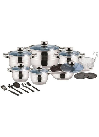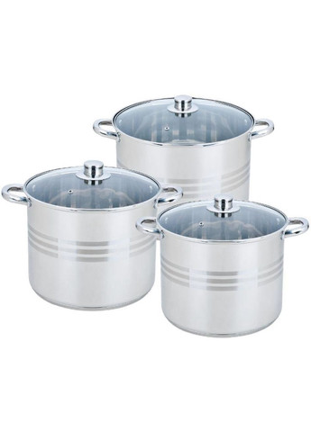 Набор посуды Bohmann 6 предметов (BH-3434) Комплектация набора: Кастрюля со стеклянной крышкой 26 см, объем: 11,3 л, высота стенок: 21 см; Кастрюля со стеклянной крышкой 28 см, объем: 13,6л, высота стенок: 22 см; Кастрюля со стеклянной крышкой 30 см, объем: 16,3л, высота стенок: 23 см; Характеристики: Материал — высококачественная нержавеющая сталь 18/10 Ручки из нержавеющей стали, не нагреваются, прочные и безопасные Крышки из жаропрочного стекла с отверстием для выхода пара Многослойное капсульное дно обеспечивает равномерный нагрев Подходит для всех источников тепла, включая индукционные плиты высококачественной нержавеющей стали CrNi 18/10. Этот материал стал так широко известен и популярен благодаря своей стойкости к коррозии и кислотам. Долговечность и надежность, первоклассная обработка изделий обеспечивают практически неограниченный запас прочности и неизменно привлекательный внешний вид посуды Bohmann. Капсульное дно посуды с толстой алюминиевой пластиной обладает высокими термоаккумулирующими свойствами и сокращает время приготовления на 30%. Применение технологии многослойного дна создает эффект удержания тепла. Диаметры изделий соответствуют общепринятым размерам конфорок бытовых плит. Посуда из нержавеющей стали Bohmann адаптирована ко всем источникам нагрева, включая индукцию. Посуда из нержавеющей стали Bohmann безупречна и простота в уходе. Полированная поверхность имеет привлекательный внешний вид и легко чистится. Привлекательная и практичная посуда Bohmann станет важнейшим дополнением к Вашей современной кухне и поможет Вам создавать кулинарные шедевры изо дня в день. Набор кухонной посуды Bohmann 6 предметов (BH-3434) включает в себя три кастрюли с объемами 11,3 л, 13,6 л и 16,3 л, изготовленные из высококачественной нержавеющей стали 18/10. Кастрюли оборудованы не нагревающимися металлическими ручками и крышками из жаропрочного стекла с отверстием для выхода пара. Многослойное капсульное дно обеспечивает равномерный нагрев и подходит для использования на всех типах плит, включая индукционные. Набор можно мыть в посудомоечной машине. Набор кухонной посуды Bohmann 6 предметов (BH-3434) олицетворяет изысканную комбинацию прочности и стиля. Эти кастрюли из элегантными изгибами из высококачественной нержавеющей стали 18/10 дарят ощущение роскоши на вашей кухне. Каждая деталь, от ненагревающихся ручек до прозрачных крышек из жаропрочного стекла с элегантным отверстием для пара, продумана до мелочей. Многослойное капсульное дно равномерно распределяет тепло, обеспечивая идеальное приготовление блюд на любых источниках нагрева, включая индукцию. Этот набор создан, чтобы подчеркнуть ваш вкус и стать настоящим украшением кухни.