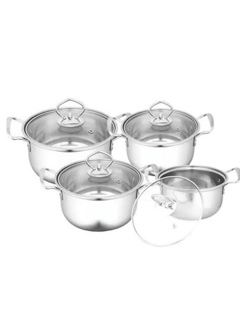 Стандартный набор, который необходим каждой хозяйке: 1.3 л, 2.3 л, 4.5 л, 6.8 л + 2 силиконовые прихватки для горячего