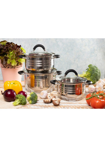 Набор кастрюль Edenberg из 6 предметов (EB-2399) изготовлен из высококачественной нержавеющей стали 18/10 с зеркальная полировкой. Дно тяжеоле многослойное, термоаккумулирующее не деформирующееся, обеспечивает равномерную теплопроводность, быстрое распределение и долгое удержание тепла, благодря чему значительно снижается риск пригорания пищи.