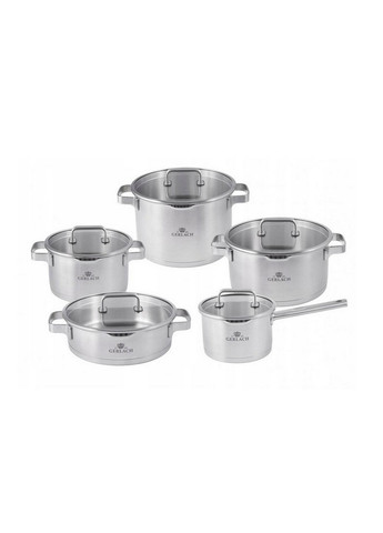 Характеристики: Материал: нержавеющая сталь 18/10; Стеклянная крышка с отверстием для выхода пари; Ручки: нержавеющая сталь, не нагревающиеся, прочные и безопасные; Подходить для всех видов кухонных плит; Можно мыть в посудомоечной машине; Трехслойное дно оснащено алюминиевым диском, который помогает равномерно распределять тепло, защищает от деформации и замедляет охлаждение продуктов в кастрюле; Внутри каждой кастрюли имеется мерная шкала, а также кожная кастрюля имеет сливной носик; Комплектация Ковш с крышкой Ø16 см – 1,5л; Кастрюля с крышкой Ø20 см – 3 л; Сотейник с крышкой Ø 24 см – 2,5 л; Кастрюля с крышкой Ø24 см – 4,5 л; Кастрюля с крышкой Ø24 см – 6 л; Все виды плит Газовые плиты Индукционные плиты Электрические плиты; Тип крепления ручек: Точечная сварка; Страна регистрации бренда: Польша; Производитель: Gerlach; Материал крышки: Стекло; Страна-производитель товара: Польша; Дополнительные характеристики: Прочный крепеж ручек Кастрюли с носиком и крышка с отварами для слива; Комплектация: Ковш с крышкой Ø16 см – 1,5 л. Кастрюля с крышкой Ø20 см – 3 л. Сотейник с крышкой Ø 24 см - 2,5 л. ; Материал ручек: Нержавеющая сталь; Материал: стекло, нержавеющая сталь; Особенности: Мерная шкала Можно мыть в посудомойке Отверстие на крышке для выхода пари Утолщенное дно; Серия: Prestige Plus; Тип: Смешанный набор; Крышка: есть; Торговая марка Gerlach; Цвет: Серебристый;