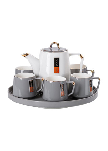 Чайный сервиз Enjoynbie Life на 6 персон состоит из 8 предметов и выполнен в стильном сером цвете. В набор входят 6 чашек объемом 300 мл, один чайник емкостью 1.5 литра и поднос, что обеспечивает удобство в сервировании. Все элементы изготовлены из качественной керамики, что гарантирует долговечность и приятный эстетичный вид. Сервиз идеально подходит для чаепитий в компании друзей или семьи. Благодаря гармоничному сочетанию практичности и стильного дизайна, он станет украшением любого стола и придаст уют каждому чаепитию. Характеристики: Количество предметов: 8 Комплектация: 6 чашек, 1 чайник, 1 поднос Материал: керамика Вместимость: чайник — 1.5 л, чашки — 300 мл Цвет: серый Особенности: стойкость к высоким температурам, эргономичный дизайн, удобный поднос для сервировки