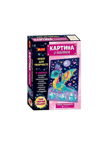 кешбэк от 42 ₴-7%213 ₴219 ₴203 ₴Акция:16:19:48Бесплатная доставка сКартинка из паеток Дракончик 10100530У Ranok-Creative (322469390)Принадлежность ДетямКартина из пайеток - отличный набор для развития творчества ребенка. Все составляющие содержатся в наборе: цветные пайетки, гвоздики, цветная схема, основа из пенопласта, подробная инструкция.