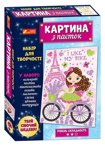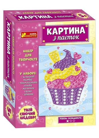 кешбэк от 39 ₴-5%199 ₴190 ₴Акция:16:19:48Бесплатная доставка сКартинка из паеток Лаванда 10100536У Ranok-Creative (333931902)Принадлежность ДетямКартина из пайеток - отличный набор для развития творчества ребенка. Все составляющие содержатся в наборе: цветные пайетки, гвоздики, цветная схема, основа из пенопласта, подробная инструкция.