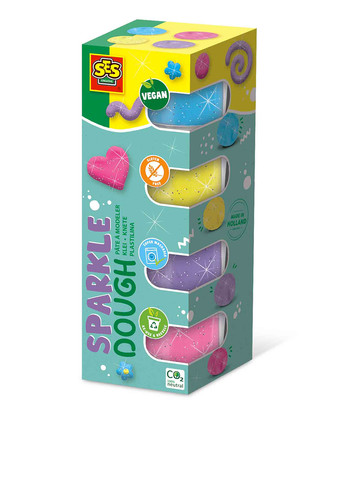 Незасыхающая масса для лепки - Блеск - подарит маленькому скульптору интересную игру и удовольствие от лепки. Скорее погружайтесь в творчество! Безопасная масса для лепки от Ses серии «Feel good dough» особенна тем, что не засыхает во время игры, долгое время остается мягкой, ее следы на одежде и других нежелательных местах легко отстирываются. Важным ее свойством является соленый привкус, благодаря чему вы можете не бояться, что ребенок захочет съесть массу. Особенности: подходит для малышей от 2 лет; масса полностью веганская, не содержит глютена; безопасна: масса имеет соленый привкус, поэтому дети ее не едят; не высыхает во время игры; очень мягкая; легко отстирывается от тканей; красиво мерцает благодаря мелким блесткам; цвета: розовый, сиреневый, неоново-желтый и светло-голубой. Набор содержит: 4 баночки с массой для лепки по 90 г. Незасыхающая масса для лепки помогает развить у детей мелкую моторику, креативность и воображение. SES. Открывай таланты! Внимание: возможно повреждение упаковки.