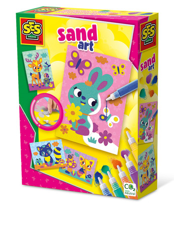 Вы любите цветной песок? Тогда этот набор для творчества от SES Creative определенно для Вас! Нанесите песок пяти разных цветов на липкие части ярких карточек, и получатся красивые цветные открытки. Вы можете сделать собственное неповторимое произведение, например лисичку, зайчика и оленя. А благодаря очень удобной форме тюбиков песок легко наносится, а также тюбики легко закрываются и открываются. В наборе для творчества: 5 тюбиков с цветным песком, 4 карточки с наклейками, инструкция. SES. Открывай таланты! Внимание: возможно повреждение упаковки.