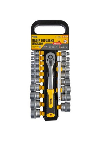 Закаленная хром-ванадиевая сталь трещотка 72Т пластиковый кейс с металлическими петлями и замком. Головки шестигранные 1/4": 4, 4.5, 5, 5.5, 6, 7, 8, 9, 10, 11, 12, 13, 14 мм удлинители 1/4 "50 мм, 100 мм удлинитель гибкий 150 мм вороток Т-образный 115 мм держатель для бит 150 мм кардан 1/4" трещотка 1/4", 72Т ключи шестигранные: 1.27, 1.5, 2, 2.5 мм адаптер под отвертку с трещоткой 30 мм биты отверточные 1/4", 40 мм: - SL4, SL5.5, SL7 - PH1, PH2, PH3 - PZ1, PZ2, PZ3 - T10, T15, T20, T25, T30, T40 - H3, H4, H5, H6, H7, H8