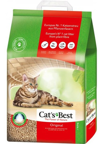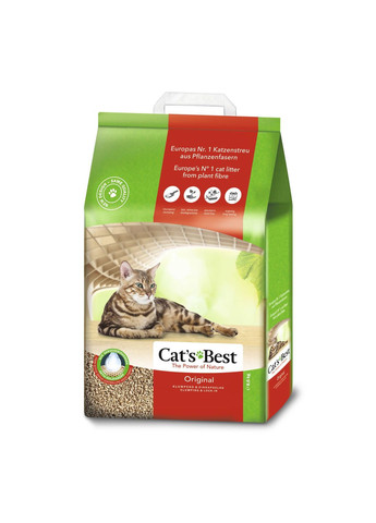 Гигиенический наполнитель Cat's Best Original — экологически чистый, производится из вторичного сырья европейской еловой и сосновой древесины. Поглощает в 7 раз больше своего объема, комкается. Без искусственных химических добавок. Очищение проходит сложным техническим процессом так, что активные волокна древесины способны поглощать и постоянно контролировать уровень влаги. Неприятный запах эффективно связывается в системе растительного волокна без добавления химических веществ или ароматизаторов, образует плотные комочки, которые могут быть утилизированы в городскую канализационную систему. Растительные волокна обладают приятной мягкостью и отсутствием пыли, обеспечивает комфорт для кошачьих лап и чувствительных органов дыхания.