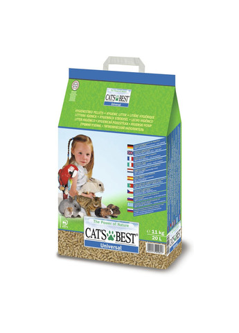 Cat's Best Universal — это универсальный наполнитель для кошек, птиц и маленьких животных, который является органическим природным продуктом из растительных волокон, добываемых из древесины ели. Идеальное решение, если в доме живет несколько разных животных. Наполнитель имеет высокое поглощение, не комкуется, а также не содержит химических добавок и на 100% является биологическим. Эффективно устраняет неприятные запахи.