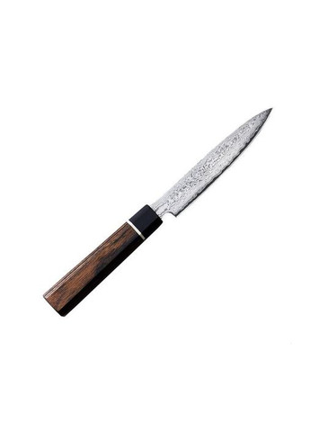 Характеристики Серия: Elegancia Материал лезвия: 3-слойная порошковая сталь SG2 Твердость, HRc: 63-64HRC Материал ручки: Pakka Wood (стабилизированная древесина) Тип: шеф Длина лезвия: 200 мм Общая длина: 335 мм Вес: 197 г Вес: 197 г максимального удобства при использовании – не слишком тонкая, не слишком толстая. С комфортным для хвата изгибом. Для рукояти используется PakkaWood (цвет ореха) – это смесь натурального древесного материала и смолы. Такой вариант значительно практичнее рукоятки из натуральной древесины в плане усадки и долговечности. Pakkawood со временем не потеряет цвет и не станет шершавой, в отличие от натурального дерева. Латунный болестер впоследствии приобретает характерный налет, благодаря которому нож приобретет старинный вид. Серия ножей Elegancia создана, чтобы очаровывать своим дизайном и поражать необычайно высокими режущими качествами.