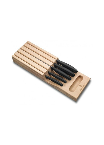 Набор ножей Victorinox SwissClassic 7 шт Black – идеальное решение для каждой кухни, как для профессиональных поваров, так и для домашних кулинаров. В составе набора вас ждут инструменты специально разработанные для разнообразных кулинарных задач. Этот комплект станет незаменимым помощником при приготовлении ваших любимых блюд, ведь в нем есть ножи для хлеба, помидоров, овощей, а также универсальный поварской нож сантока. Сочетая в себе качество и стиль, SwissClassic 7 шт Black предоставляет вам возможность работать с продуктами разного типа, предотвращая их повреждение. К примеру, нож для хлеба с классической заточкой позволяет легко нарезать даже самый мягкий и свежий хлеб, не делая его хрупким. Нож для томатов, со своей специальной серрейторной заточкой, обеспечивает легкую и точную нарезку сочных овощей, не оставляя следов на поверхности. Уникальность набора заключается не только в функциональности ножей, но и в их эстетическом виде. Черные рукоятки выполнены из высококачественного пластика – они не только удобны в использовании, но и придают элегантность вашим приготовлениям. Victorinox, быть специалистом в производстве кухонных ножей, постоянно совершенствует свои технологии, поэтому вы можете быть уверены в надежности и долговечности каждого инструмента. Этот набор ножей не только прекрасен для личного использования, но и станет прекрасным подарком для друзей или близких. Особенности, такие как подарочная упаковка, делают этот комплект изысканным выбором для любого праздника. Только представьте радость, которую вы доставите кому-то, подарив им SwissClassic 7 шт Black . Чтобы получить максимальную выгоду из этого набора и сохранить ножи в отличном состоянии, соблюдайте несколько простых рекомендаций. После каждого использования мойте ножи вручную с мягким моющим средством и сушите их досуха во избежание коррозии. Не рекомендуется использовать ножи на керамических или стеклянных поверхностях, так как это может привести к повреждению заточки. Храните ножи в специальном блоке или магнитном держателе, чтобы обеспечить удобный доступ и безопасность. Когда речь идет о качестве, над надежностью этих ножей будет стоять Victorinox, известный своими традициями изготовления с 1884 года. Производство в Испании гарантирует, что каждый нож проходит тщательный контроль качества перед попаданием к вам. Не мешайте, ведь качество и функциональность SwissClassic 7 шт Black сделает вашу кулинарную деятельность еще более приятной и легкой. Этот нежный, но мощный комплект ждет вас в нашем интернет-магазине. Купить его очень просто, и вы получаете не только нож, но и инструмент, который изменит ваше отношение к приготовлению пищи. Наслаждайтесь каждым моментом кухонного процесса из Victorinox!