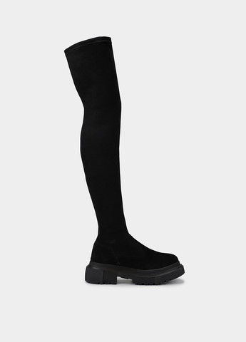 Ботфорты выполнены в комбинации натуральной замши и стрейча, что обеспечивает комфортную посадку и удобство во время ношения. Полнота модели: средняя.