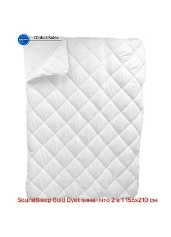 Двойное одеяло на кнопках 2в1 из коллекции Gold DyetСезон: 4 сезона (зима, весна, лето, осень)Теплота: очень теплое (два одеяла вместе), среднее, легкоеНаполнитель: овечья шерсть+антиаллергенное силиконизированное волокноПлотность наполнителя: 450 г/м2 (овечья шерсть 150 г/м2+300г/м2 антиаллергенное волокно)Чехол: микрофибраРазмер: 155х210 смЦвет: белыйТип прошивки: стеганоеОсобенности: на кнопкахУпаковка: сумка с ручкойПлотность и тепловые особенности наполнителя:шерсть 150г (30% овечья шерсть /70% антиаллергенное волокно)+300г (антиаллегенное волокно)Одеяло SoundSleep Gold Dyet зима-лето 2 в 1 155х210 см белое (93900775) с комфортным наполнителем подарит вам невероятно приятный, крепкий и здоровый сон. С таким одеялом можно не расставаться круглый год, ведь оно подойдет для холодной зимы, лета и в период межсезонья. Модель состоит из двух отдельных одеял, соединяемых кнопками. Одно одеяло демисезонное, второе летнее, их можно использовать как вместе, так и отдельно, в зависимости от времени года. Соединив летнее и межсезонное одеяла в одно изделие, вы получаете экстра теплое одеяло для зимнего периода. Нежное, приятное на ощупь двойное одеяло имеет комбинированный наполнитель из натуральной овечьей шерсти и антиаллергенного волокна. Чехол одеял выполнен из мягкой, белоснежной микрофибры. Микрофибра - очень долговечная, гигиеничная, антибактериальная и износостойкая ткань, устойчивая к загрязнениям, быстро сохнет после стирки и имеет противогрибковый эффект. Одеяло словно окутывает сухим, теплым облаком, обладает антиаллергенными и терморегулирующими свойствами, очень хорошо сохраняет тепло и обеспечивает отличную воздухопроницаемость.