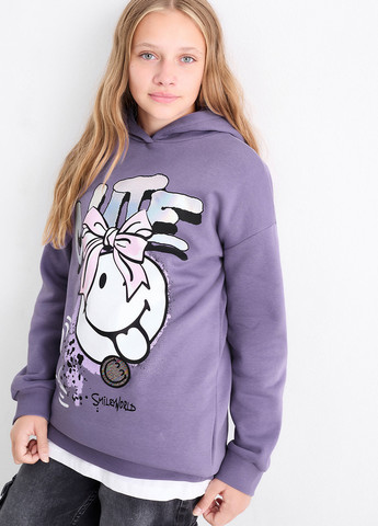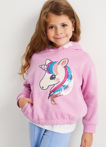 Мягкая толстовка из пота с ярким принтом единорога и фирменным слоганом. Ребристые планки. Изделие внутри с начесом. Ширина плеч 40см, длина рукава 57см, полуобхват груди 47см, длина изделия 58см.