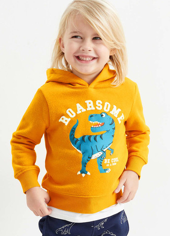 Мягкая толстовка из пота с ярким принтом единорога и фирменным слоганом. Ребристые планки. Изделие внутри с начесом. Ширина плеч 40см, длина рукава 57см, полуобхват груди 47см, длина изделия 58см.