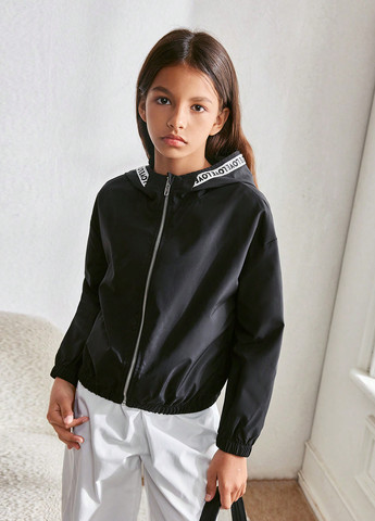 Ветровка свободного покроя для девочек-подростков. Есть капюшон. Застежка-молния. С карманами. Рукава с заниженной линией плеча. Ткань не тянется.