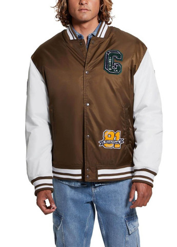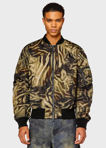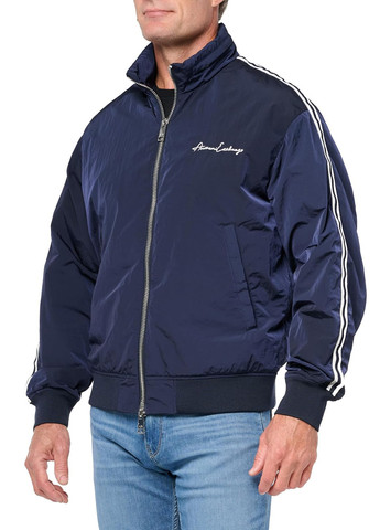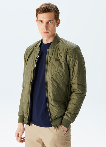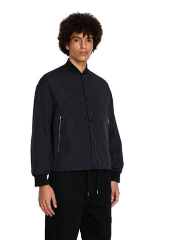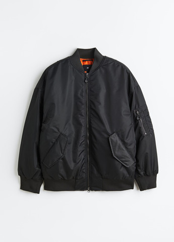 Куртка-бомбер оверсайз с легкой утепленной тканью из нейлона. Воротник-стойка, молния спереди, сильно заниженные плечи и длинные рукава. Передние карманы с клапаном и застежкой-кнопкой, карман на рукаве на молнии и два внутренних кармана на кнопке. Ребристая отделка на воротнике, манжетах и подоле. На подкладке. Длина рукава: 59,5 дюйма (размер M/L), длина спинки: 74 дюйма (размер M/L).