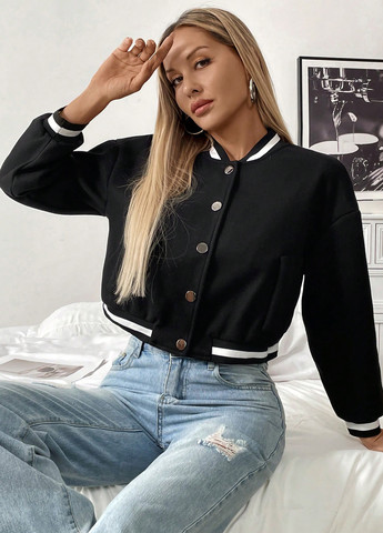 Теннисная куртка Varsity Sports – это повседневная осенне-зимняя одежда из трикотажной ткани с небольшой эластичностью. У него длинные рукава и однобортная планка спереди на пуговицах. Куртка имеет короткую длину, завышенный крой, вырез воротника. Нашивные детали, карманы и графика в стиле Letterman придают спортивный оттенок классическому дизайну.