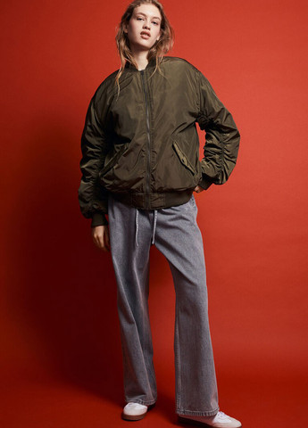 Чуть более длинный, слегка утепленный бомбер из тканого материала с ребристым воротником-стойкой и молнией спереди. Заниженная линия плеча, длинные рукава и трикотажная резинка на манжетах и подоле. Диагональные передние карманы и карман на молнии на рукаве. Подкладка из тафты из переработанного полиэстера.