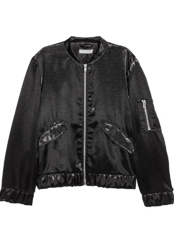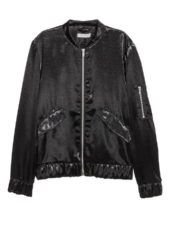 Куртка из мягкой ткани с блеском. Низкий воротник стойка и молния спереди. Передние карманы с клапанами на потайной кнопке, а также карман на рукаве на молнии. Широкая резинка снизу на рукавах, а также по нижнему краю. На подкладке.