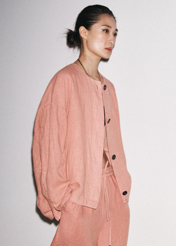 ZARA WOMAN COLLECTION Бомбер из смесового льна и вискозы. Круглый вырез и длинные рукава с манжетами. Детали со складками. Застежка на пуговицы спереди.