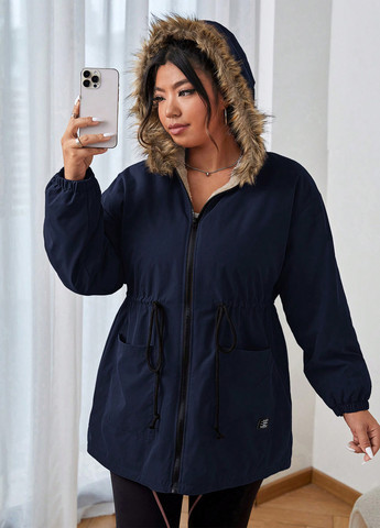 Парка имеет свободный крой и фиксируется на поясе со шнурком, что позволяет регулировать ее посадку на фигуре. Также она оснащена капюшоном, который поможет оградить вас от дождя или снега.Эта парка имеет стильный дизайн – синий цвет придает ей элегантность и подходит к любому образу.