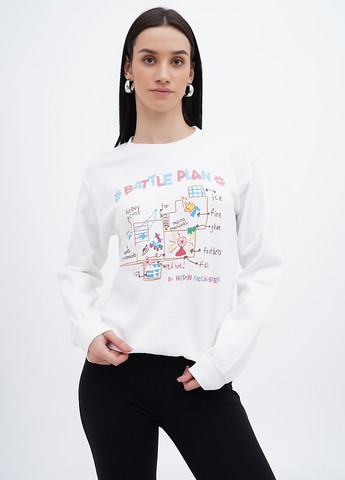Цвет Белый / Материал Хлопок, Полиэстер, Футер / Узор Рисунок / Покрой Прямой / Длина рукава Длинный