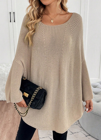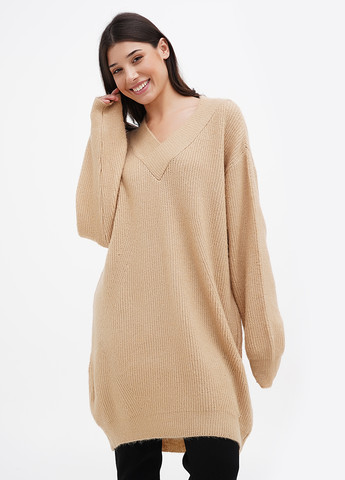 Цвет Бежевый / Материал Акрил, Шерсть / Фасон С длинным рукавом / Стиль Кэжуал / Узор Однотонный