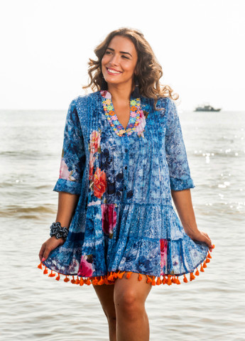 Тренд сезона – прозрачная вышитая туника из сетчатого фатина в молочном оттенке. Легкая, воздушная, с роскошной фактурной вышивкой – это вещь не просто украшение пляжного образа, а настоящий стилевой хит, прекрасно смотрящийся и в городе. V-образный вырез, мягкая линия плеч, летучий фасон и рукав ¾ создают силуэт, одновременно подчеркивающий женственность и оставляющий чувство свободы. Ремень с кистями фиксирует талию, но не ограничивает движений. Туника не тяготит, а "рисует" образ - легко, будто контуром по телу. Идеальна как на купальник – для отдыха у моря или бассейна, так и поверх топа с джинсами или шортами – для прогулок, путешествий, ужина на террасе. Это именно тот вариант, который выглядит дорого, но не обязывает. Вышивка – плотная, не теряет формы после стирки.